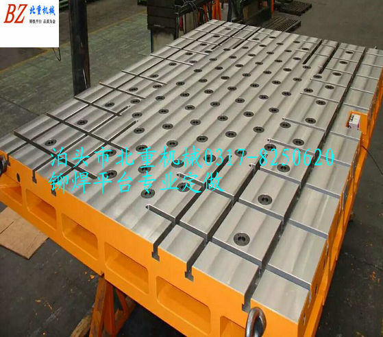 鑄鐵鉚焊平臺(tái)是鉚焊工作的基礎(chǔ)工作臺(tái).北重T型槽鉚焊平臺(tái)為了滿(mǎn)足鉚焊工藝需求,鑄鐵工作臺(tái)面加工縱向或橫向T型槽,適當(dāng)位置加工圓孔,大型鉚焊平臺(tái)采用HT200-300灰鐵鑄造而成.鉚焊平板臺(tái)面經(jīng)過(guò)人工刮研處理,在鉚焊工作中其作用不容小視.使用鉚焊平臺(tái)運(yùn)用到工作中,可提高工作效率增強(qiáng)產(chǎn)品質(zhì)量.