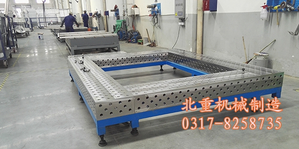 由于樹脂砂具有較好的流動(dòng)性、易緊實(shí)、脫模時(shí)間可調(diào)節(jié)、硬化后強(qiáng)度高、在其后的搬運(yùn)及合箱過(guò)程中不變形;因樹脂砂的剛度高,在澆注和凝固過(guò)程基本上無(wú)形壁位移現(xiàn)象,所以焊接平臺(tái)廠家生產(chǎn)的焊接平臺(tái)鑄件的尺寸精度高,它比粘土砂及油砂生產(chǎn)的鑄件可提高1-2個(gè)級(jí)別。