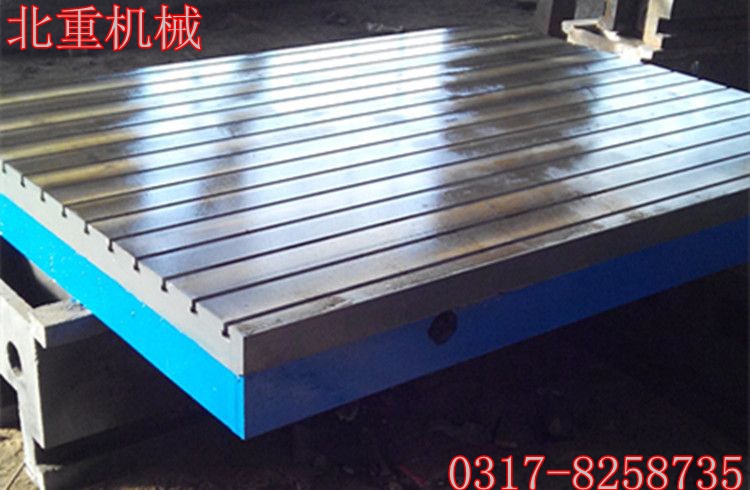 T型槽平臺使用高強度鑄鐵HT200-300 工作面硬度為HB170-240,經過兩次人工處理(人工退火600-700度和自然時效2-3)T型槽平臺的工作面采用刮削工藝,T型槽平臺工作面上可加工V形、T形、U形槽和圓孔、長孔等,可用來固定動力機械設備。使用該產品的精度穩定,耐磨性能好。T型槽平臺工作面加工有T型槽,主要用來固定工件,是鉗工工人用來調試設備,裝配設備,維修設備的基礎工作平面