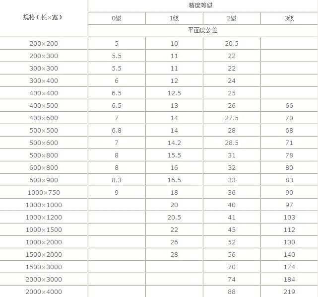 3、精度登記為0-3級的平板工作面上,直徑小于15mm的砂孔允許用相同材料堵塞,其硬度應(yīng)小于周圍材料的硬度。工作面堵塞的砂孔應(yīng)不多于4個,且砂孔之間的間距應(yīng)不小于80mm