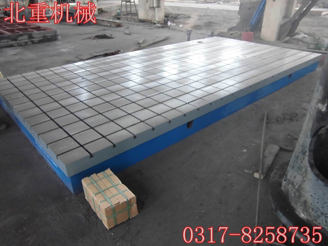 鉚焊焊接平臺的材質:高強度鑄鐵HT200-300,工作面硬度為HB170-240,經過兩次人工處理(人工退火600度-700度和自然時效2-3年)使該產品的精度穩定,耐磨性能好。